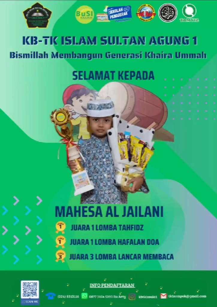 Juara 1 “Lomba Tahfidz, Juara 1 Lomba Hafalan Doa, Juara 3 Lomba Lancar Membaca