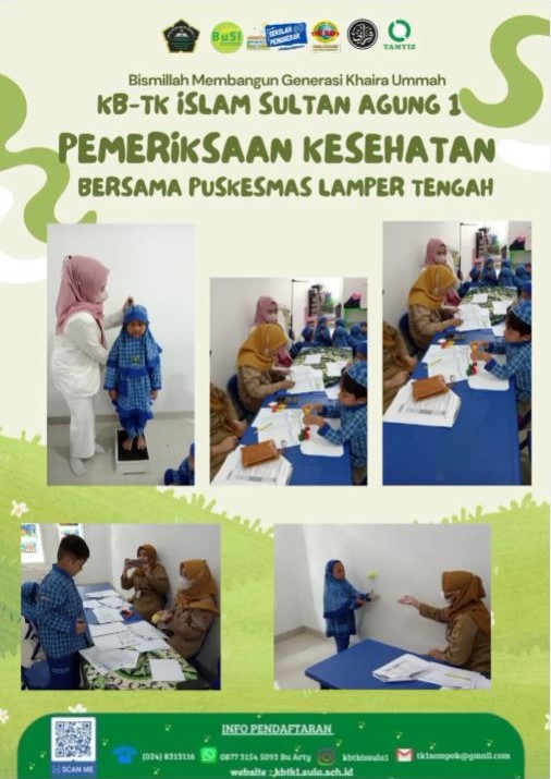 Pemeriksaan kesehatan siswa siswi KB TK Islam Sultan Agung 1 Semarang bekerjasama dengan Puskesmas Lamper Tengah